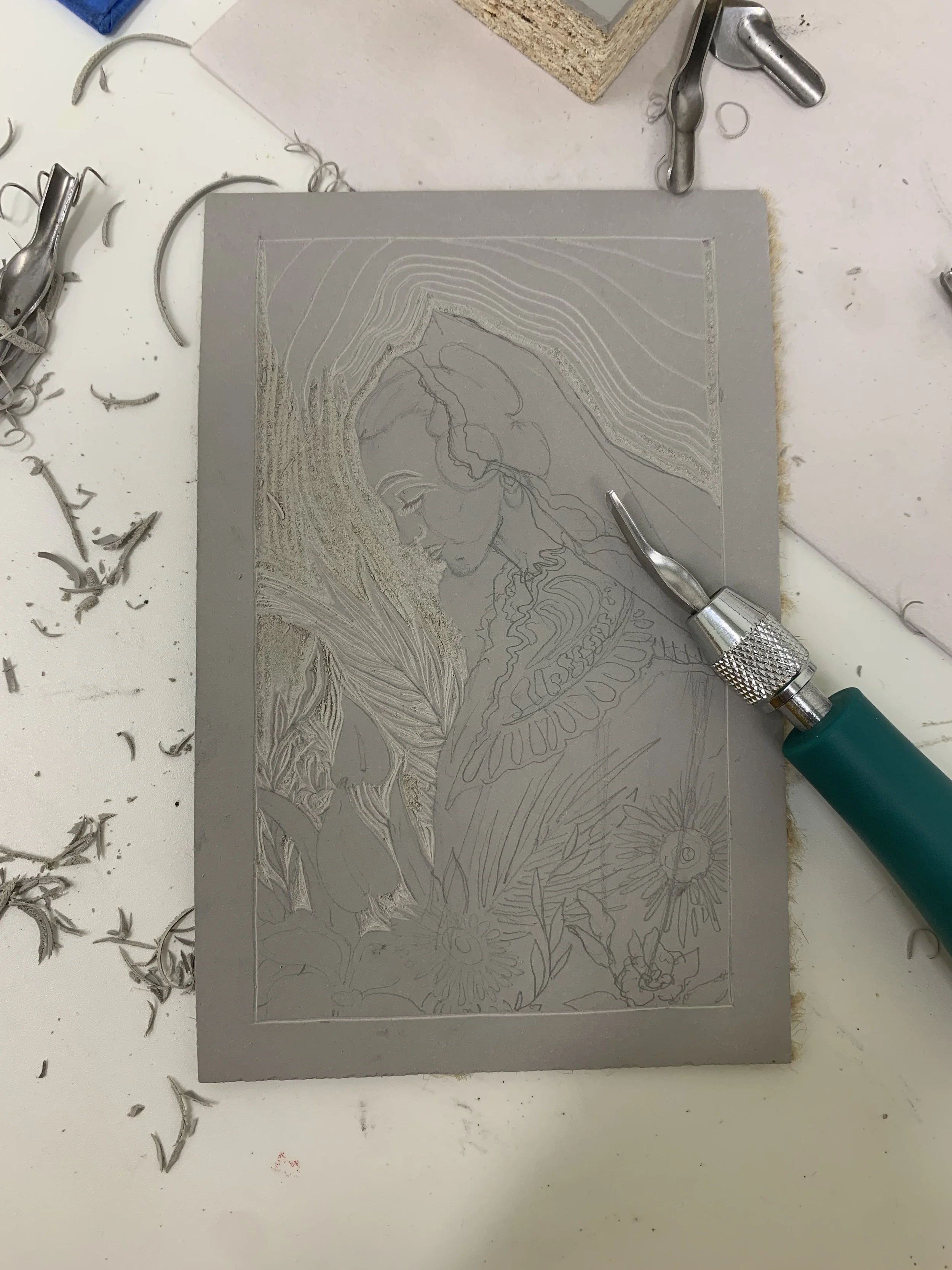 This 4-hour course will begin with a brief presentation and discussion on relief printmaking, and a survey of linocut works on paper. Instructor Kately Towsley will begin with a book share, examining examples of linocut printmaking, printmakers working with linocut, and a few of her own examples. Students will draw, outline, carve, and print a small linocut with a design of their choosing. Instructor Towsley will demo each step of the process, working alongside as students complete their own work.